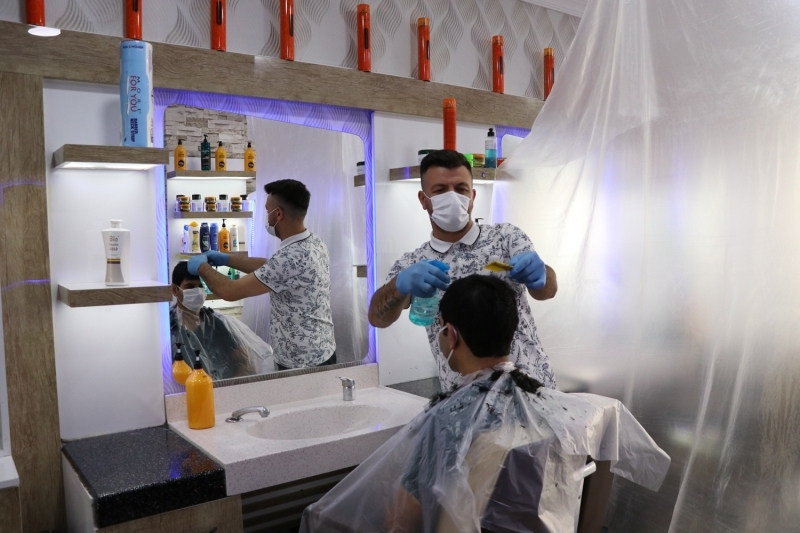 Şanlıurfa'da yeni tip koronavirüs (Kovid-19) tedbirleri kapsamında faaliyetleri geçici olarak durdurulan berber, kuaför ve güzellik merkezleri, müşterilerine yeniden hizmet vermeye başladı.