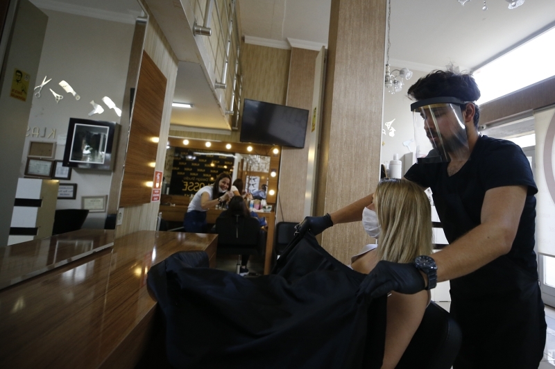 Antalya, Yeni Tip Koronavirüs (Kovid-19) tedbirleri kapsamında kapatılan berber, kuaför ve güzellik salonları, gerekli tedbirleri alarak yeniden müşteri kabul etmeye başladı.