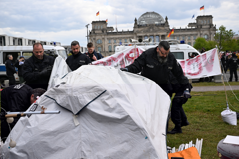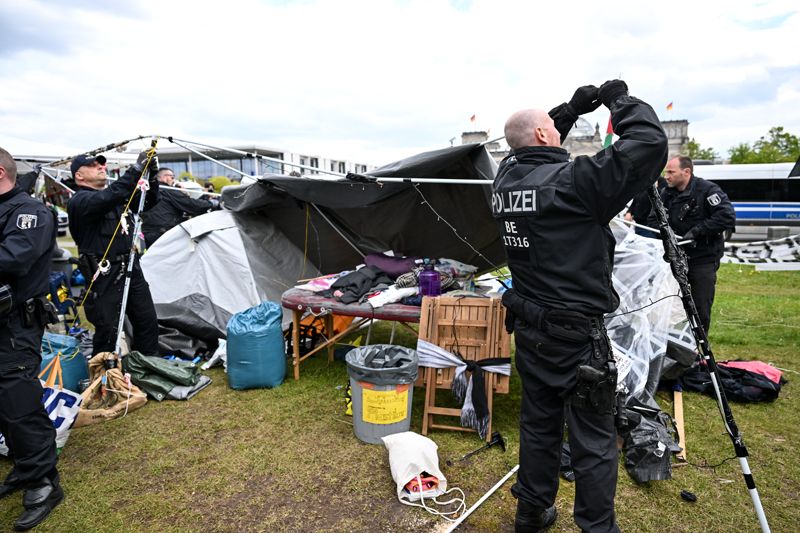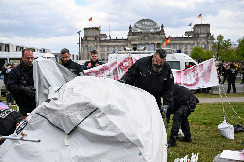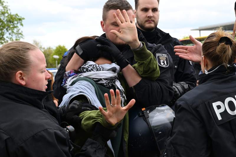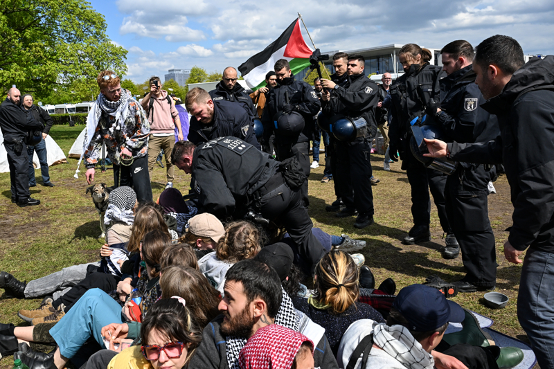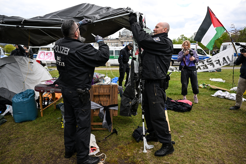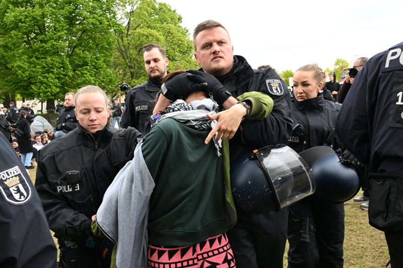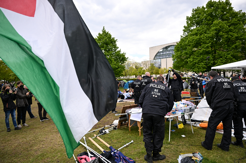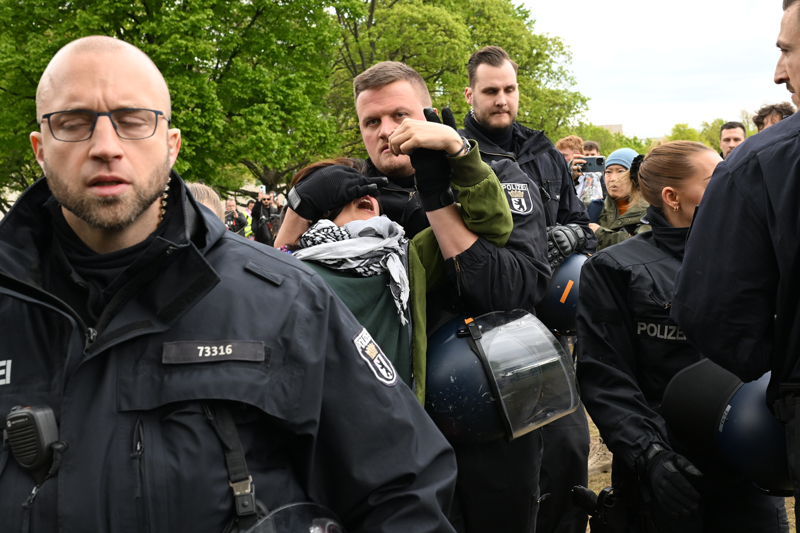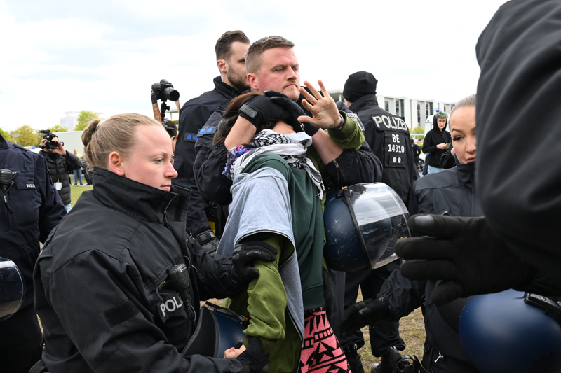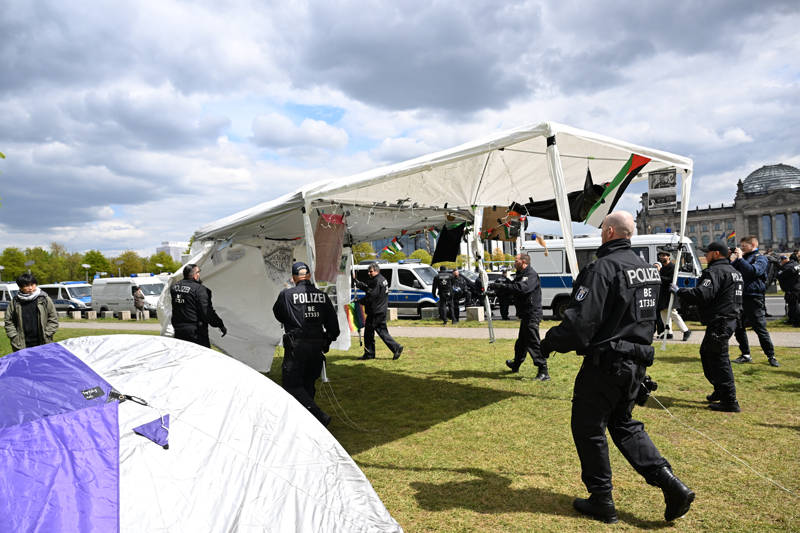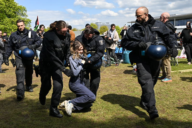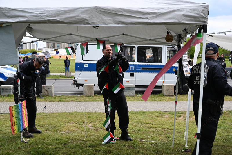 Almanya hükümetinin Filistin destekçileri tarafından oluşturulan 'Gazze'ye destek' kampını boşaltma kararı sonrası polis ekipleri göstericilere müdahale etti. Bazı göstericiler gözaltına alındı.