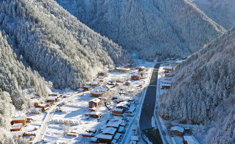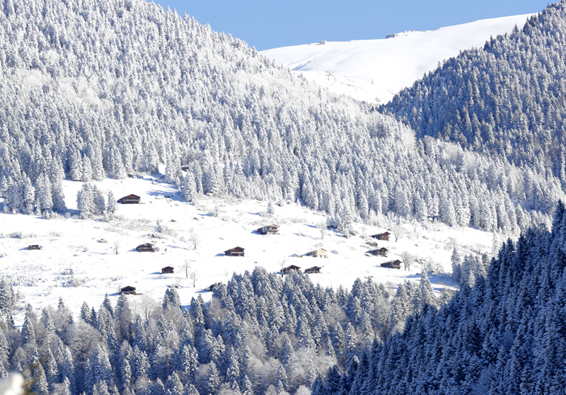 Beyaz örtüyle kaplanan Uzungöl'de kartpostallık görüntüler