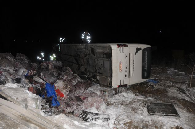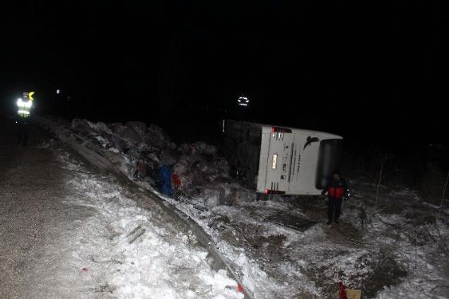 Bilecik'te yolcu otobüsü devrildi