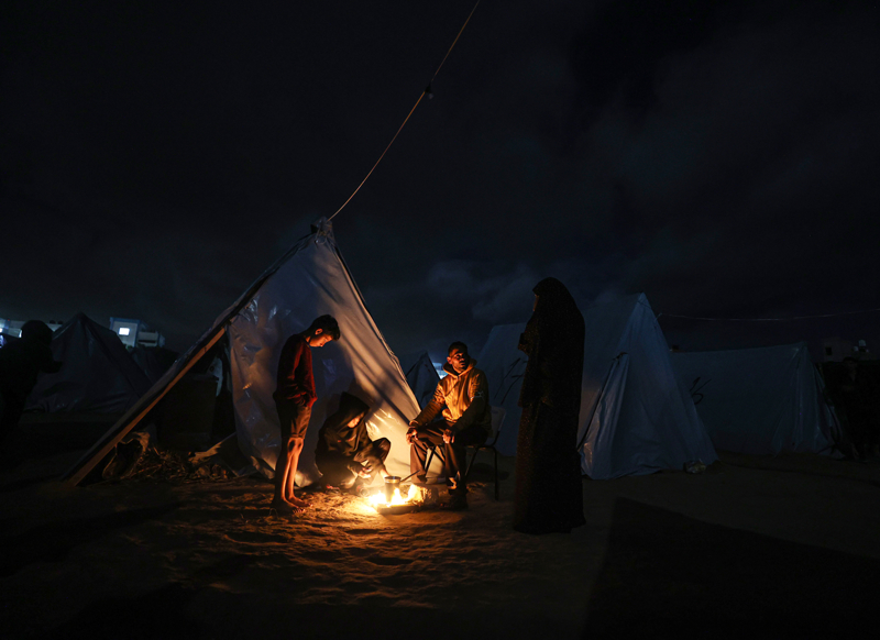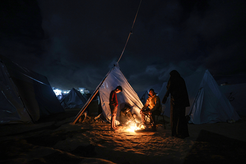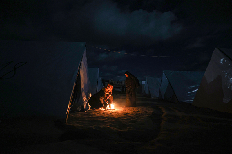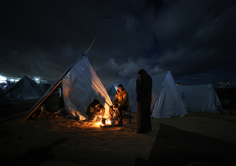 Han Yunus kentinde dayanıksız çadırlarda yaşayan yerinden edilmiş Gazzeliler, kısıtlı imkanlarla ve zor şartlar altında soğuk hava koşullarıyla mücadele ediyor.