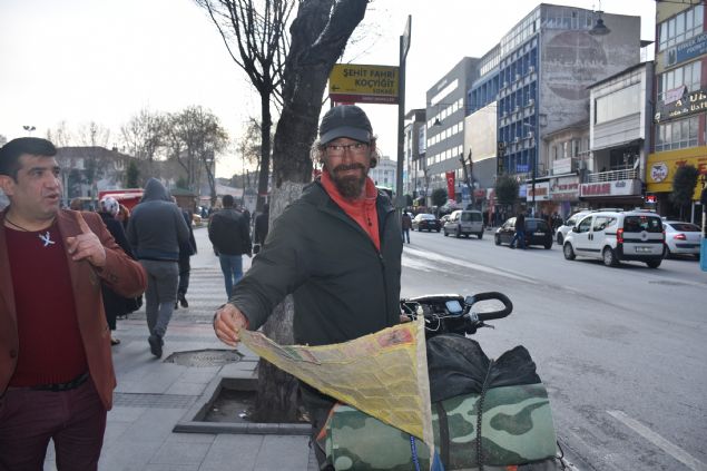 Kapadokya'dan buraya geliyorum. Buradan sonra tekrar yola çıkacağım. Bütün insanlar yardım etti. Dışarıda çadırda kalıyorum. Türk insanları çok yardımsever. Gördüğü yerde çayını veriyor, yemeğini veriyor' dedi.