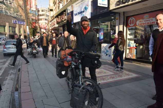 Fransız bisikletçi 27 gündür Türkiye'de turladığını belirterek, 'Buradan sonra İran, Türkmenistan, Özbekistan, Çin ve Japonya'ya geçeceğim.