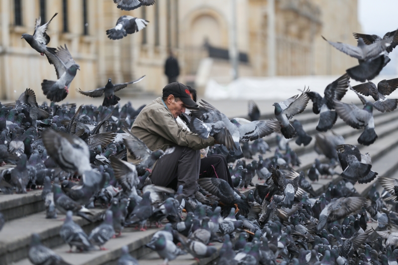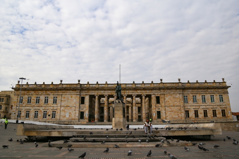 Başkent Bogota'daki Bolivar Meydanı'nda karantina sürecinde sessizlik hakimdi.