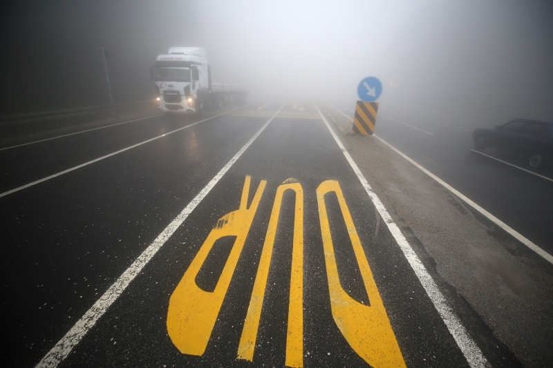 D-100 kara yolu Bolu Dağı geçişinin, Düzce ve Bolu kesimlerinde etkili olan sis nedeniyle görüş mesafesi yer yer 15 metreye kadar düştü.