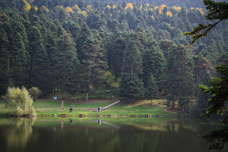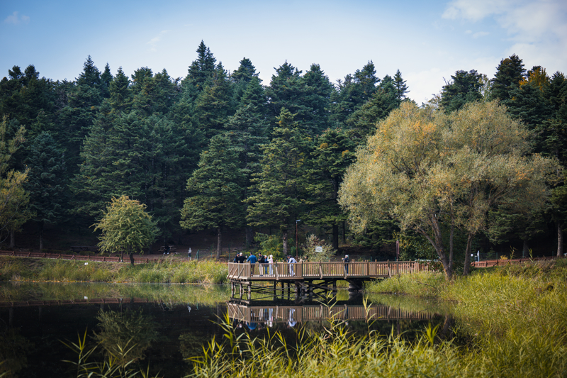 Bolu'nun doğal güzellikleriyle ünlü Gölcük Tabiat Parkı'nda güz mevsiminin sarı, kahverengi, kızıl renkleri hakim oldu. Parkın içinde yer alan gölde yetişen nilüferler, doğayı süslüyor.