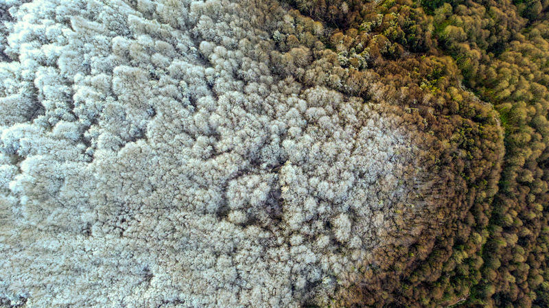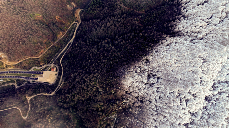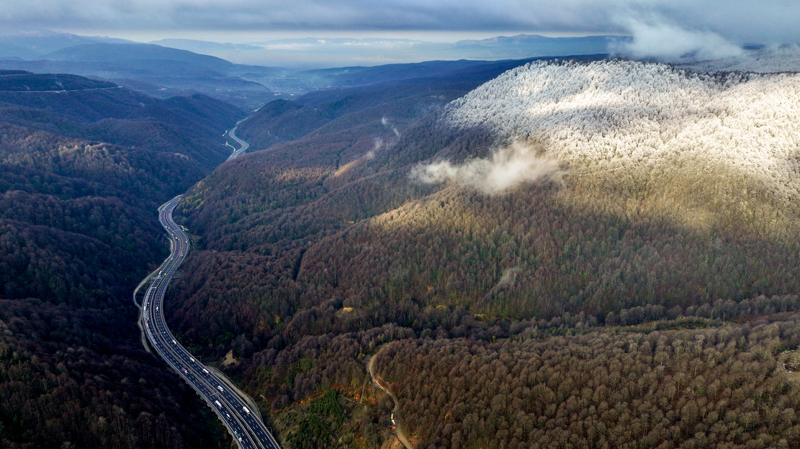Bolu Dağı'nın Anadolu Otoyolu Tünel geçişinin yüksek kesimlerinde etkili olan kar yağışı, drone ile görüntülendi.
