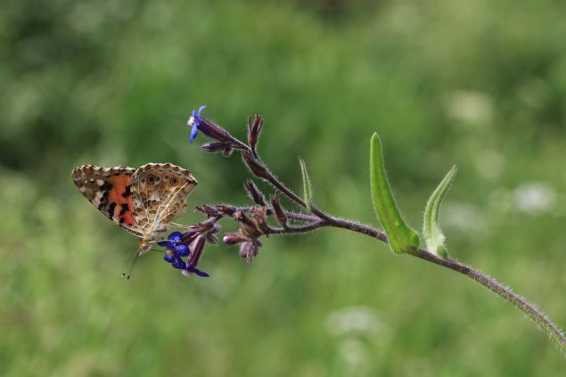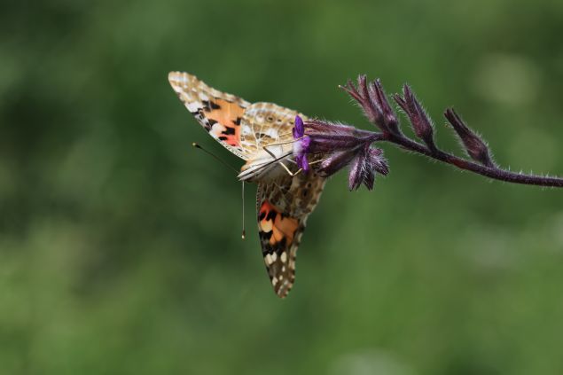 Diken denilen mor çiçeğin üzerine konan ve yavrularını bunun üzerinde büyüten diken kelebeğinin yaygın, kozmopolit bir kelebek türü olduğunu anlatan Karaçetin, şöyle konuştu: