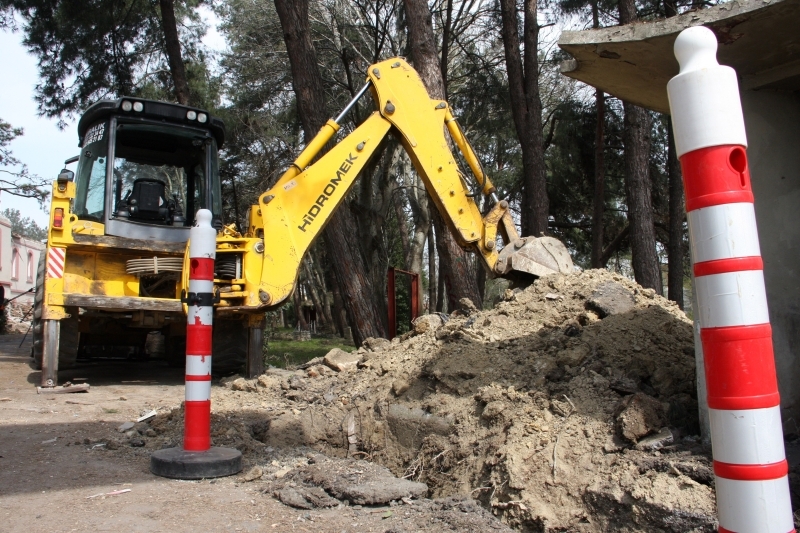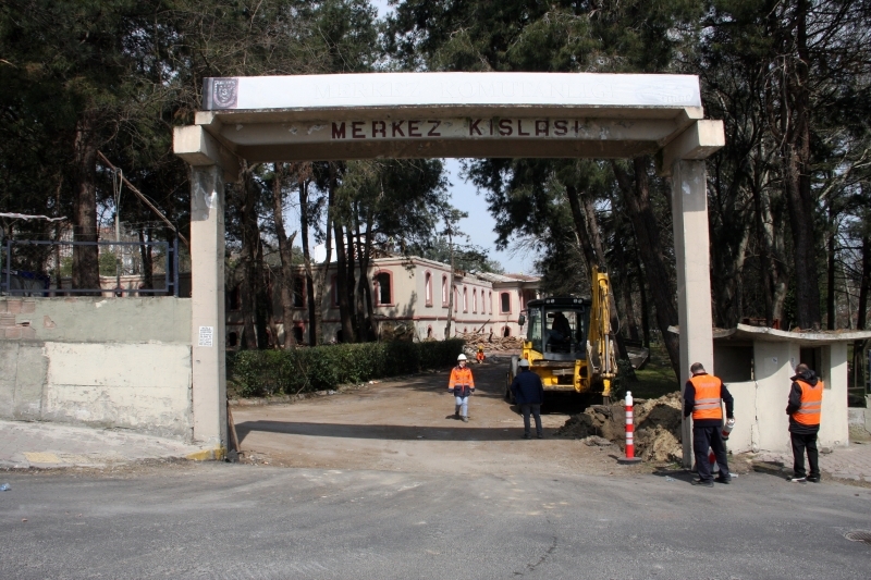Eski askeri hastanesindeki geniş bir alanda oluşturulan inşaat sahasında iş makineleri ve hafriyat kamyonları ile hummalı bir çalışma yürütüyor.