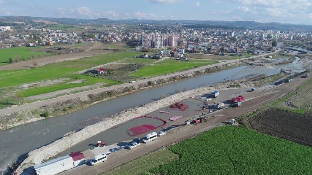Türkiye'de turp üretiminin merkezi olan Osmaniye’nin Kadirli ilçesinde Savrun Çayı üzerinde kurulu turp havuzları drone ile havadan görüntülendi