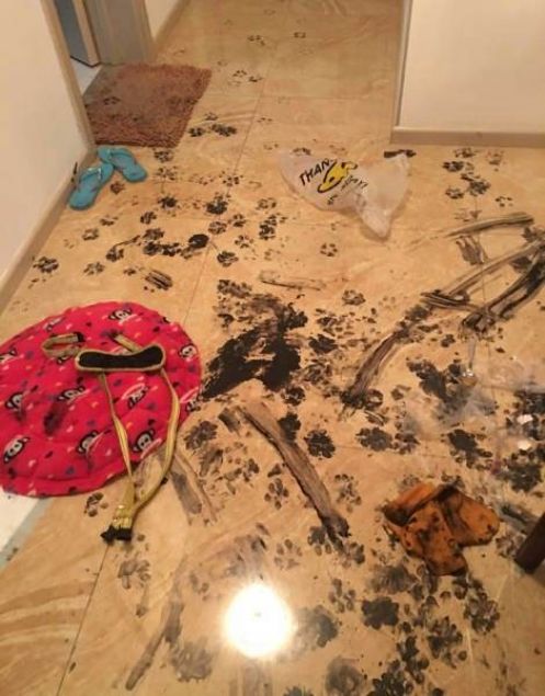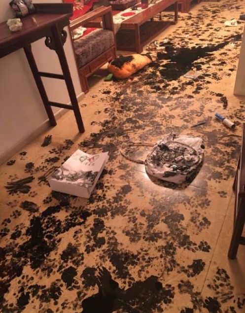 Sinemaya giden aile köpeklerini sadece 3 saat yalnız bıraktı. Eve geri döndüklerinde ise bakın nasıl bir manzara ile karşılaştılar..
