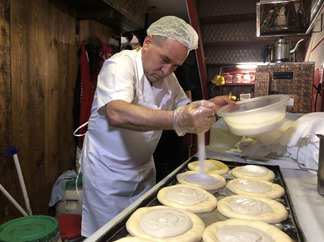 Ben 42 yıldır baba mesleğimi yapıyorum. Sahur vakti en çok Bursa'ya özgü olan tahinli pide ve pekmezli kazan simidi satılıyor. Bursalılar için her sabah kahvaltısında tahinli pide olmazla olmazdır. Sahurda da son dakikalara kadar insanlar bu lezzet için kuyrukta bekliyor.