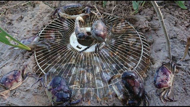 Tuzağını hazırlayan bu kız, suya bırakıp üzerini bir miktar çalılıklarla örttükten sonra tuzağını orada bırakıp gidiyor.