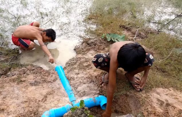 İşte iki çocuğun sadece pvc boru kullanarak yaptıkları sıradışı bir balık tutma yöntemi...
