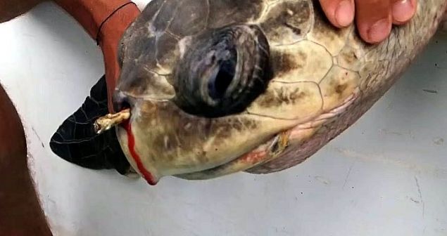 10-12 cm uzunluğunda plastik bir pipet kaplumbağanın burnundan çıkarılmaya çıkarılırken bu içler acısı görüntü kameraya işte böyle yansıdı...