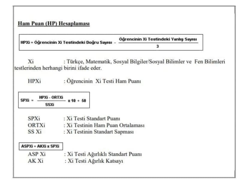 e. Öğrencilerin her bir teste ait Standart Puanı (SP); o teste ait ortalama ve standart sapma kullanılarak tüm öğrencilerin ham puanlarının ortalamasını 50’ye, standart sapmasını 10’a getiren bir dönüştürme işlemi sonunda elde edilir.