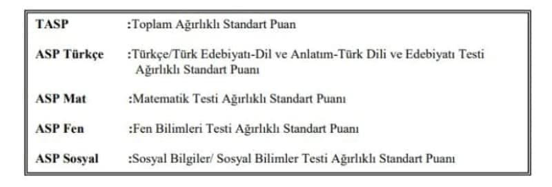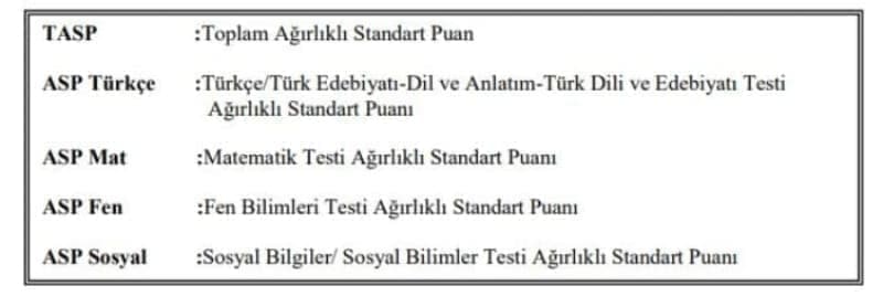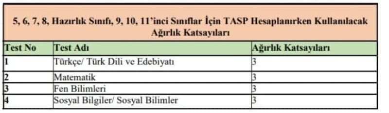 g. Testlerin ağırlıklı standart puanları toplanarak Toplam Ağırlıklı Standart Puan (TASP) bulunur.