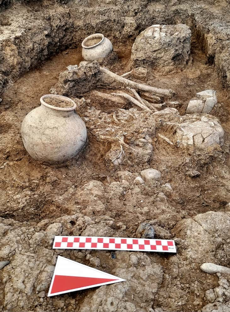 'Kamusal bir yapı, birçok alanda Çanak Çömleksiz Neolitik Dönem B evresi dediğimiz milattan önce 9000-8500 yılları arasına tarihlenen ızgara planlı yapılar evresine ait 4 yapı bulduk. Kazının sonlarına doğru Çanak Çömlekli Neolitik Dönem'e ait milattan önce 7000-6000 yılları arasına tarihlenen yoğun bir mimari ile karşılaştık. 2024'ten beri İlk Tunç Çağı (Erken Tunç Çağı) alanının geniş alanlarını açmamız hem yerleşim dokusunu tanımlamamıza hem de bu seneki verilerle kültür katmanını biraz daha iyi anlamamıza vesile oldu. Önemli buluntularımızdan biri de İlk Tunç Çağ Dönemi dediğimiz milattan önce 2900-2750'lere tarihlenen bir mezarlık alanı olduğunu belirledik. Bu alanda daha yoğun bir mimari mezarlık olduğunu tespit ettik. Kazdığımız 8 mezarda çalıştık. Bunlardan 7'si İlk Tunç Çağı dönemine yani milattan önce 3000'lere ait, biri de Neolitik Dönem'e ait.'
