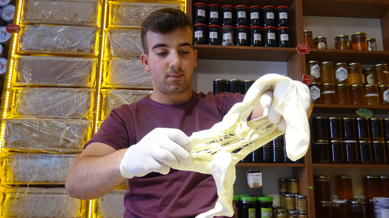 Tel tel olana kadar yoğurulduktan sonra peynir kıvamını alan ürün, kesim işleminin ardından kuruması için asılıyor ve tüketime hazır hale geliyor.