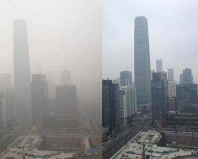 Kirlilik öyle bir boyutta ki, otoyollardaki görüş alanı bile birkaç metreye düşüyor. Bunu gören Çin hükümeti hava kirliliğini önlemek yerine Pekin içinde farklı noktalara LCD ekranlar koyarak güneşin doğuşunu veya temiz çevre görüntülerini yayınlıyor.