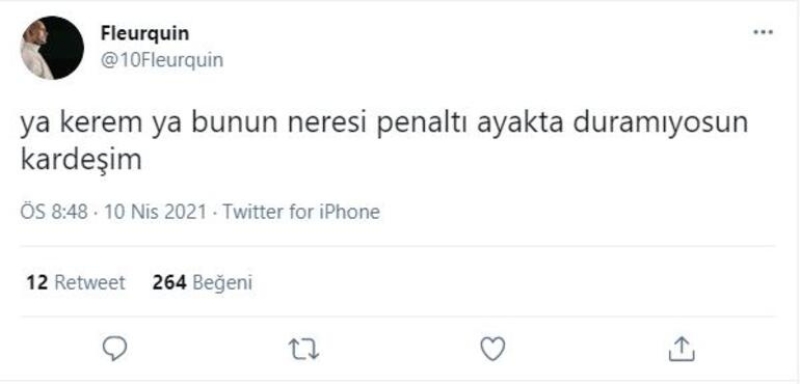 Savunma arkasına sarkan ve kaleciyle karşı karşıya kalan Kerem Aktürkoğlu, Balkovec'in müdahalesiyle yerde kaldı ve hakem Ali Palabıyık penaltı noktasını gösterdi. Pozisyon sonrası Balkovec direkt kırmızı kart gördü.