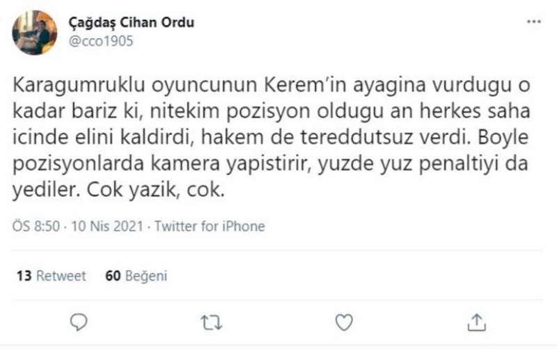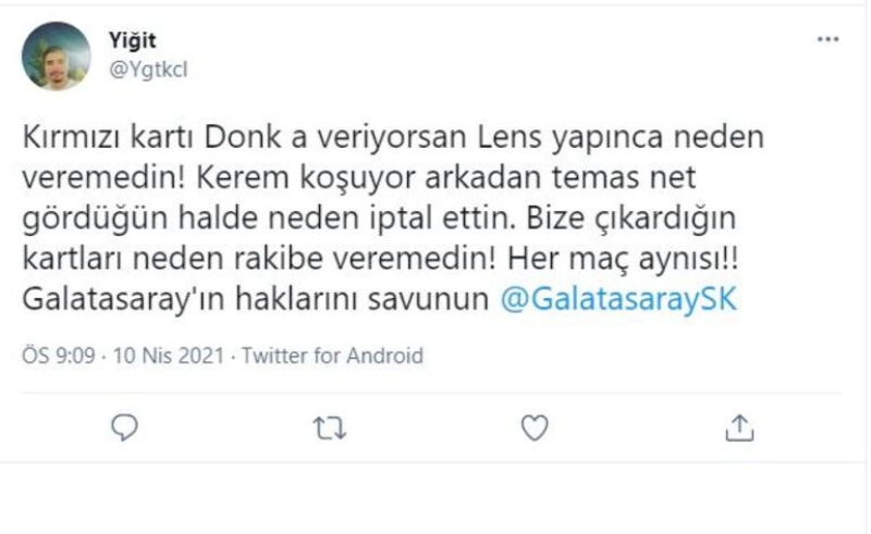 Bir kısım taraftar genç futbolcuya yapılan müdahalenin penaltı olmayacağını savunurken, bir kısım sarı-kırmızılı taraftarlar ise penaltı kararının iptal edilmesinin doğru olmadığını dile getirdi.
