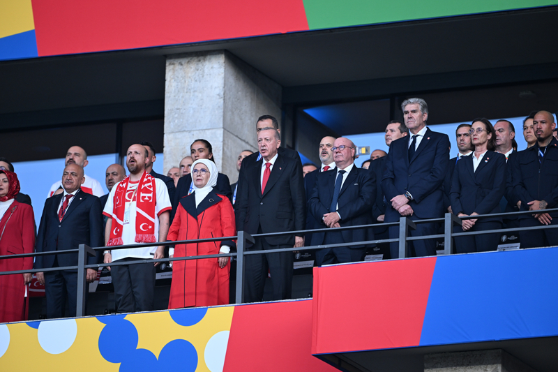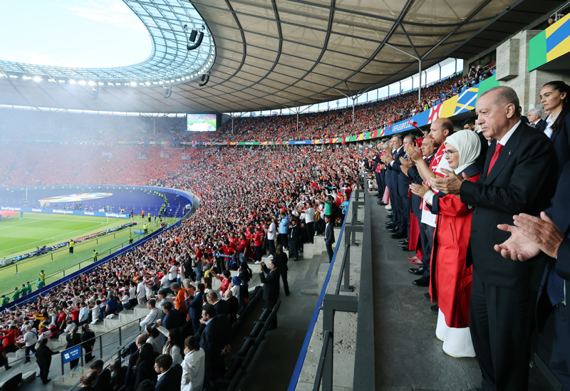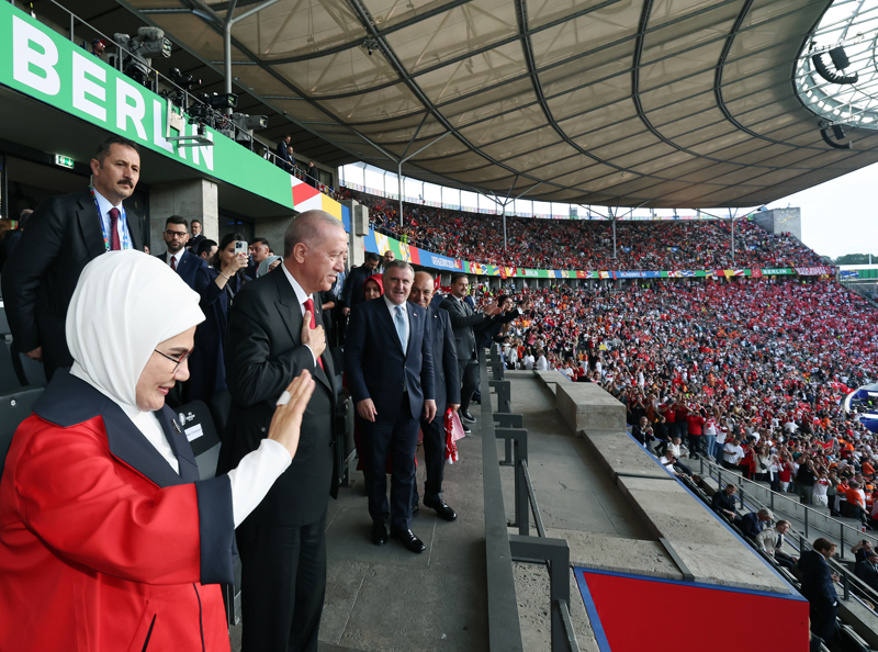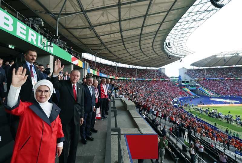 Cumhurbaşkanı Recep Tayyip Erdoğan ve eşi Emine Erdoğan, Almanya'da düzenlenen 2024 Avrupa Futbol Şampiyonası (EURO 2024) çeyrek finalinde Hollanda ile Türkiye takımlarının, Berlin Olimpiyat Stadyumu'ndaki karşılaşmasını izlemek için stada geldi.