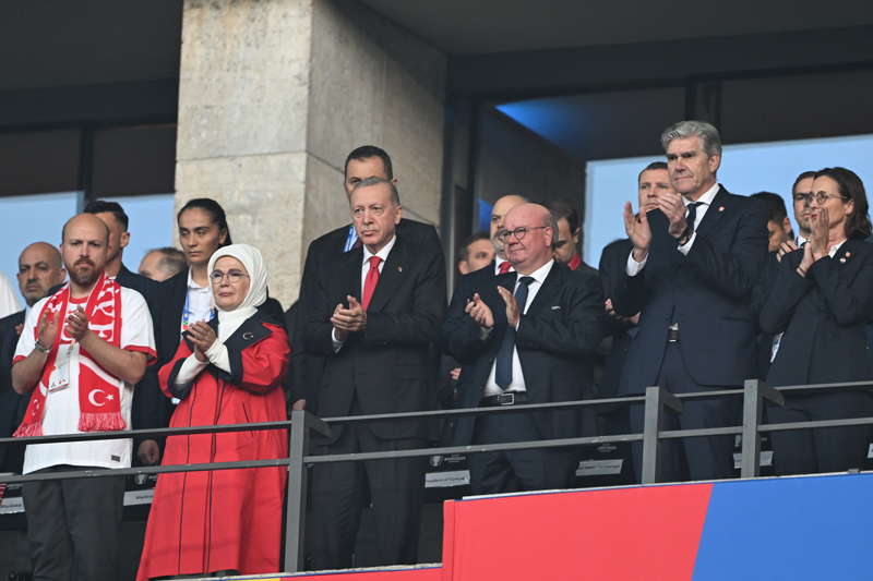 Recep Tayyip Erdoğan, Berlin Olimpiyat Stadı'ndaki mücadeleyi, eşi Emine Erdoğan, Gençlik ve Spor Bakanı Osman Aşkın Bak, Türkiye'nin Berlin Büyükelçisi Ahmet Başar Şen, Türkiye Futbol Federasyonu Başkanı Mehmet Büyükekşi, UEFA Yönetim Kurulu Üyesi Servet Yardımcı, Dünya Etnospor Konfederasyonu Başkanı Bilal Erdoğan, eski futbolcu Mesut Özil ve Hollanda Futbol Federasyonu yetkilileri ile birlikte protokol tribününden takip etti.