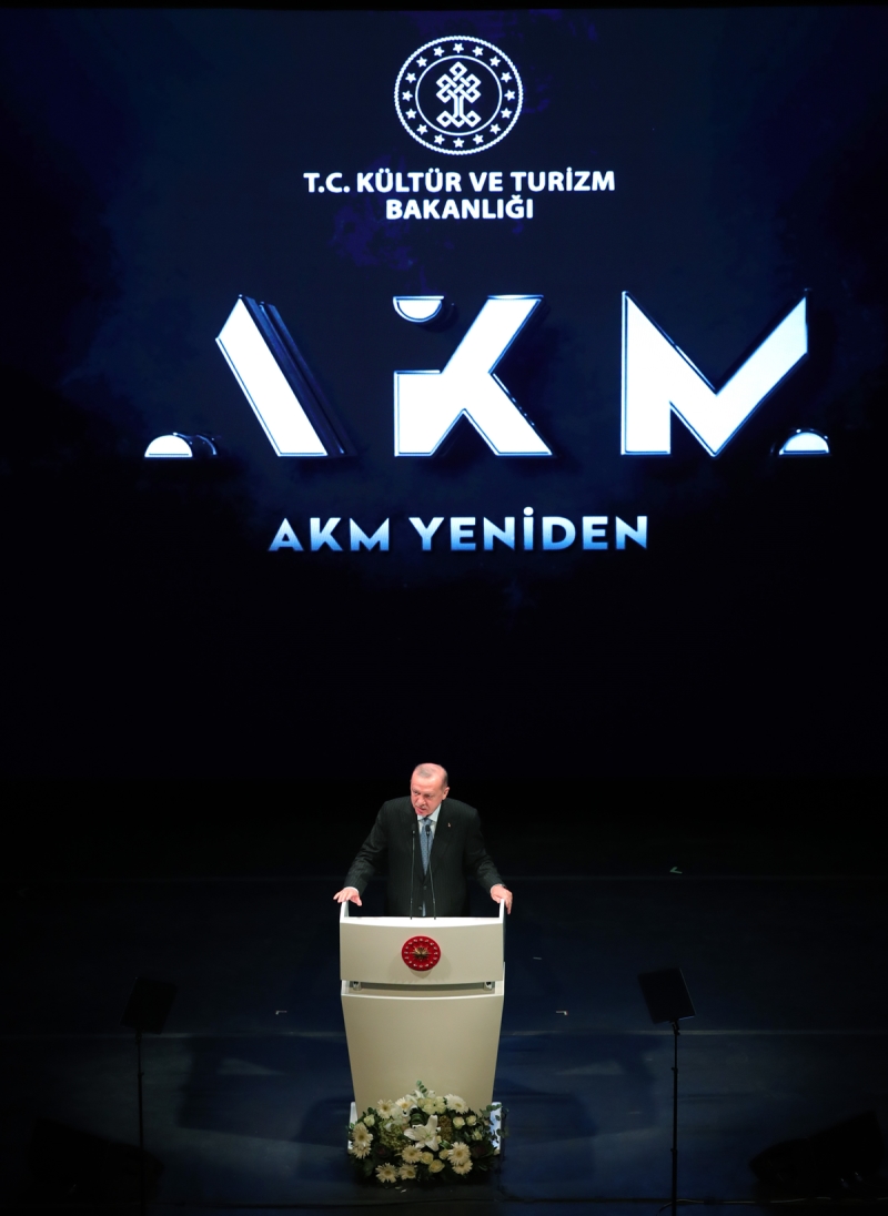 Cumhurbaşkanı Recep Tayyip Erdoğan, yenilenen Atatürk Kültür Merkezi'nin (AKM) açılışını gerçekleştirdi. AKM'nin açılış kurdelesini, Cumhurbaşkanı Erdoğan ve eşi Emine Erdoğan ile Cumhurbaşkanı Yardımcısı Fuat Oktay, TBMM Başkanvekili Celal Adan, MHP Genel Başkanı Devlet Bahçeli, BBP Genel Başkanı Mustafa Destici, İçişleri Bakanı Süleyman Soylu, Kültür ve Turizm Bakanı Mehmet Nuri Ersoy, Çevre Şehircilik ve İklim Değişikliği Bakanı Murat Kurum, Aile ve Sosyal Hizmetler Bakanı Derya Yanık, Gençlik ve Spor Bakanı Mehmet Kasapoğlu ve bazı katılımcılar kesti.
