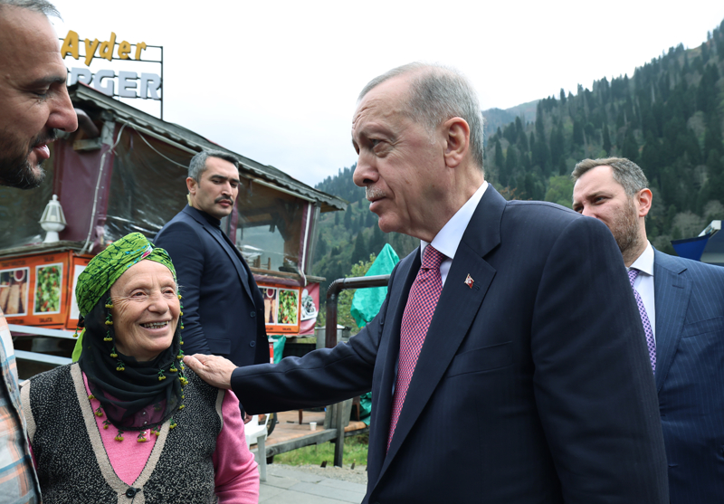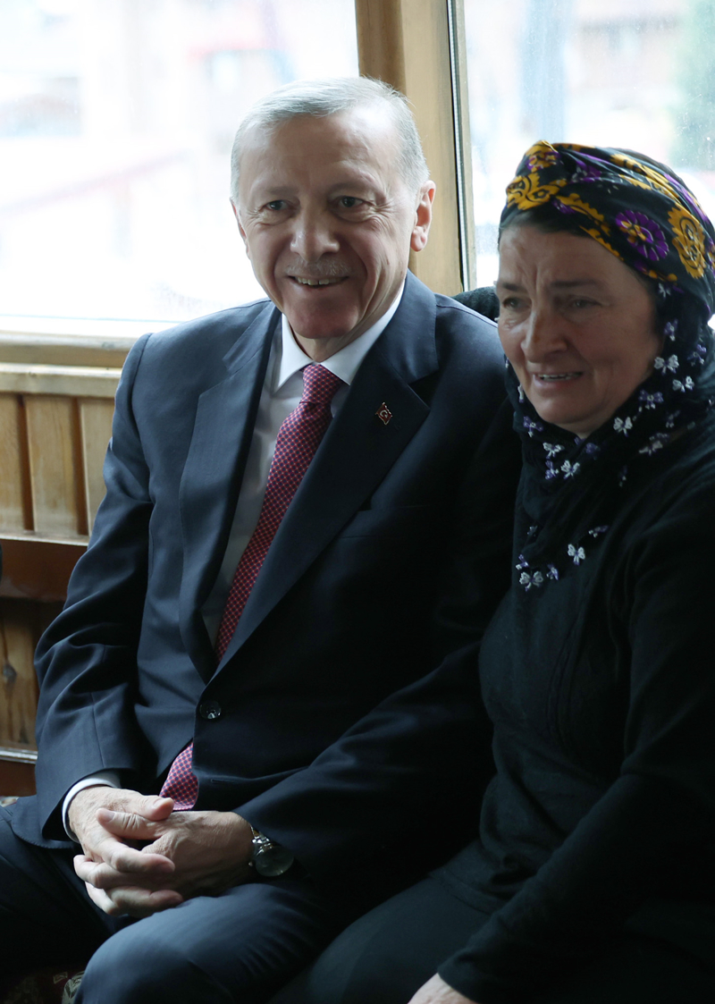Erdoğan, Ayder'den ayrılırken kendisine sevgi gösterisinde bulunan vatandaşlarla fotoğraf çektirdi.