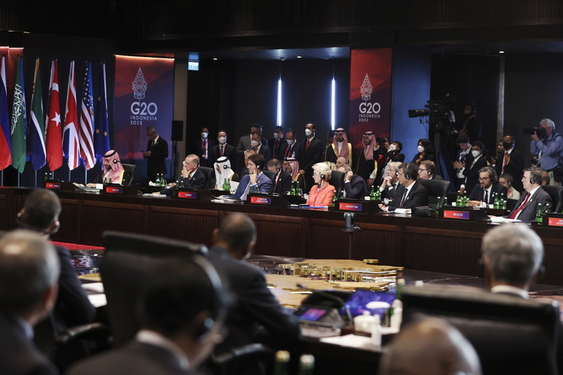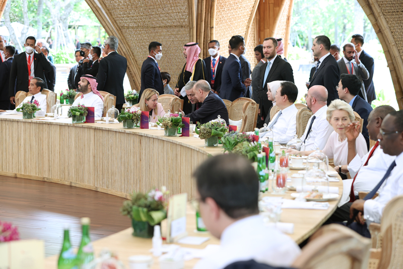G20 Liderler Zirvesi, Endonezya Devlet Başkanı Joko Widodo'nun liderleri karşılama töreniyle başladı. Cumhurbaşkanı Erdoğan, Bali'deki G20 Liderler Zirvesi resmi karşılama törenine katıldı. Cumhurbaşkanı Erdoğan, oturumun yapılacağı salonda liderlerle ayaküstü sohbet etti.