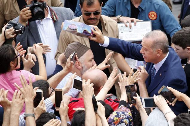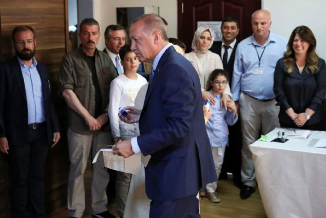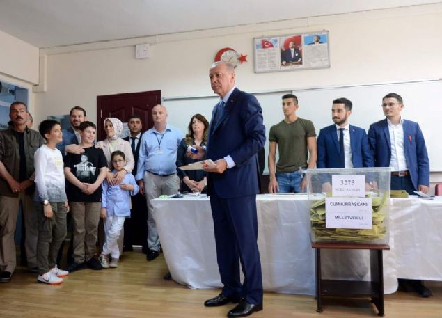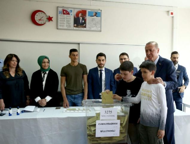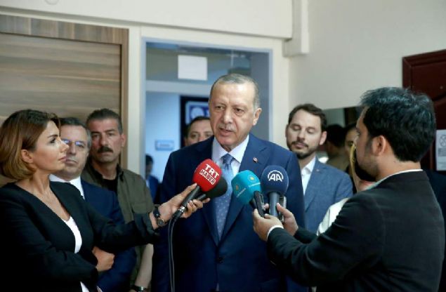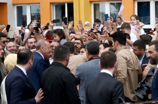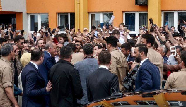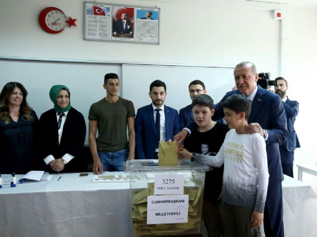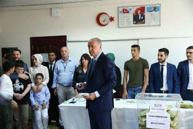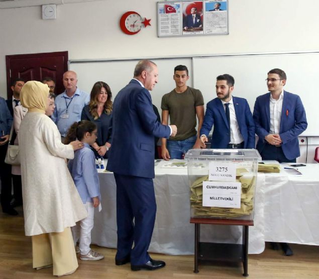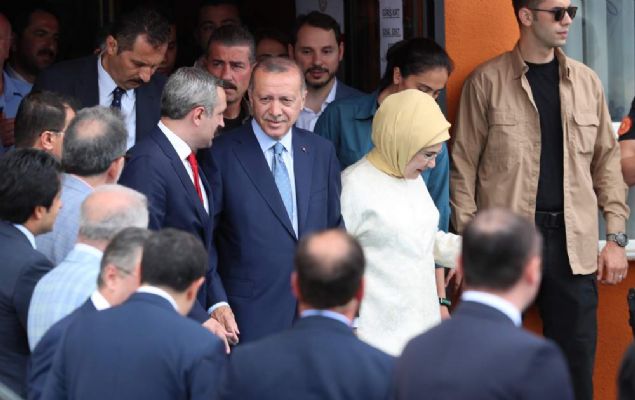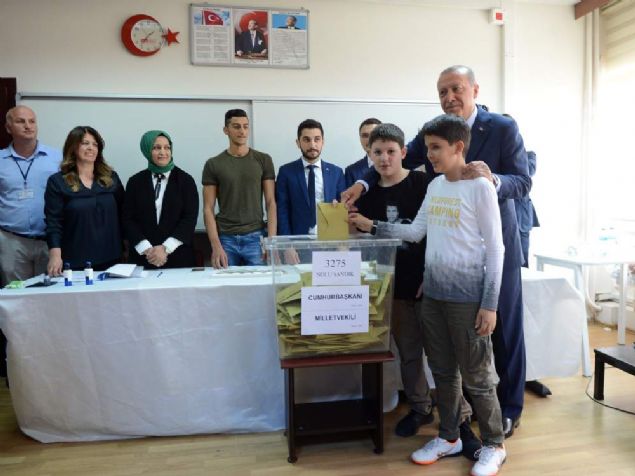 CUMHURBAŞKANI Recep Tayyip Erdoğan, seçimlerle ilgili yaptığı konuşmada 'Aldığım bilgilere göre ciddi sıkıntıların olmadığını öğrendik. Hayırlı olsun' dedi. Cumhurbaşkanı Erdoğan saat 13.30 sıralarında oyunu kullanacağı Üsküdar Saffet Çebi Ortaokulu'na geldi. Cumhurbaşkanı Erdoğan'la eşi Emine Erdoğan, Enerji ve Tabii Kaynaklar Bakanı Berat Albayrak, kızı Esra Albayrak ve torunları da okula geldi. Erdoğan'ı karşılayanlar arasında İstanbul Valisi Vasip Şahin, İstanbul Büyükşehir Belediye Başkanı Mevlüt Uysal, AK Parti İstanbul İl Başkanı Bayram Şenocak da yer aldı Erdoğan'ın okula girdiği sırada vatandaşlar yoğun ilgili gösterdi.