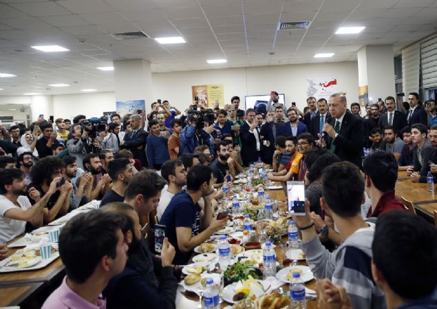 Daha sonra Atak ve beraberindeki öğrencilerle yurdun yemekhanesine geçen Erdoğan, gençlerle sohbet ederek sahur yaptı.