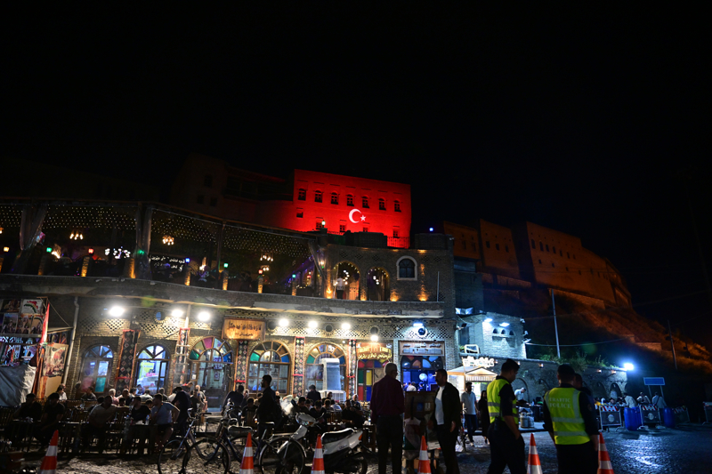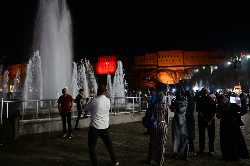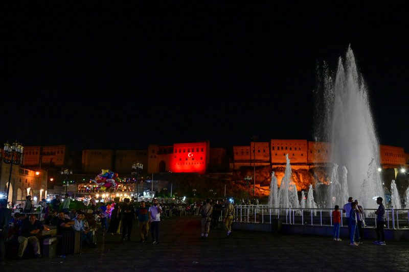 Cumhurbaşkanı Recep Tayyip Erdoğan'ın ziyaret edeceği Erbil'de, tarihi Erbil Kalesi'ne Türk Bayrağı yansıtıldı.