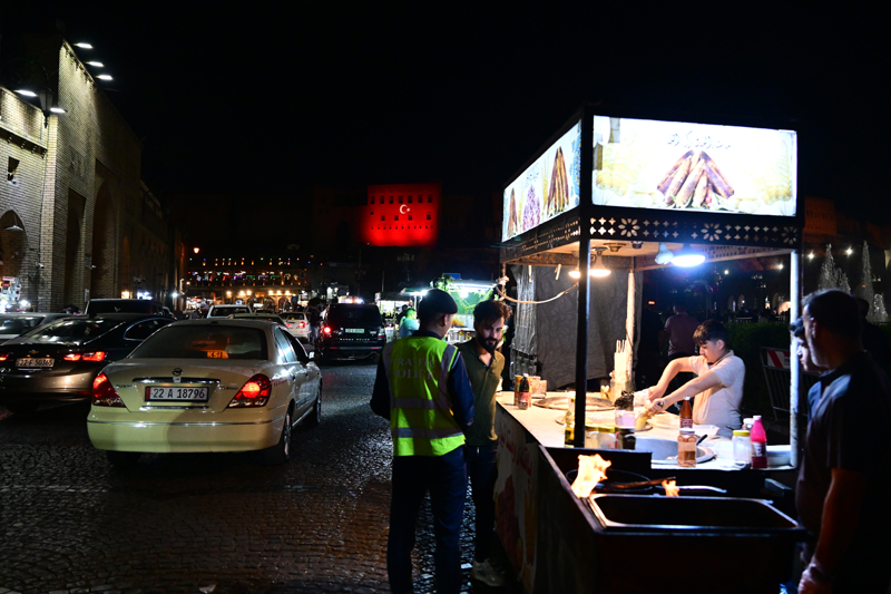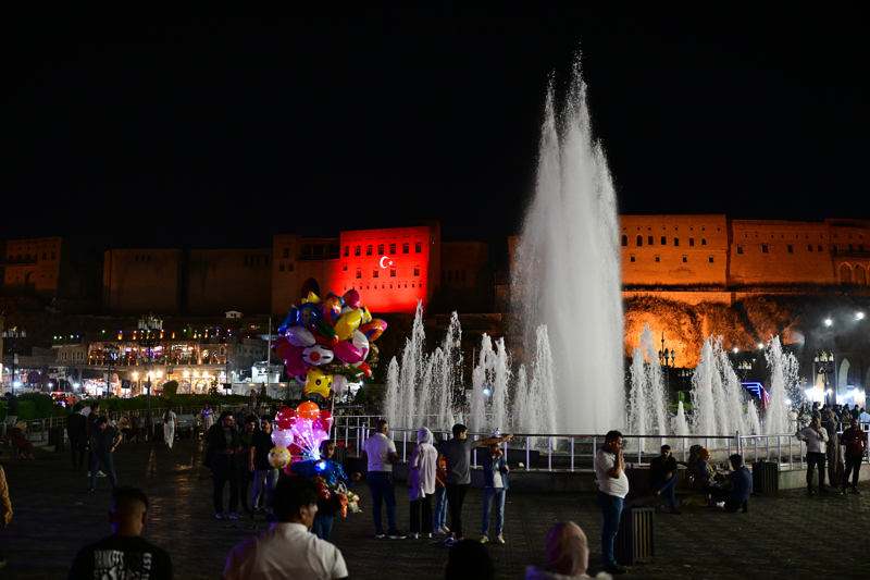 Irak'ın başkenti Bağdat ile Erbil'de, Cumhurbaşkanı Recep Tayyip Erdoğan'ın yapacağı ziyaretten dolayı cadde ve sokaklara Türk bayrakları asılırken Erbil Kalesi'ne Türk bayrağının görüntüsü yansıtıldı.