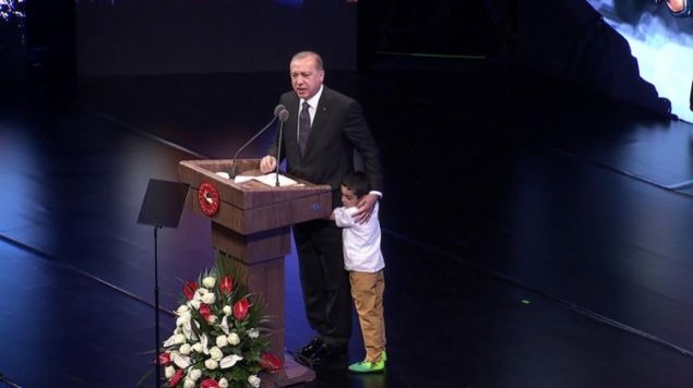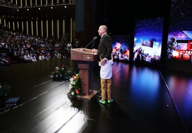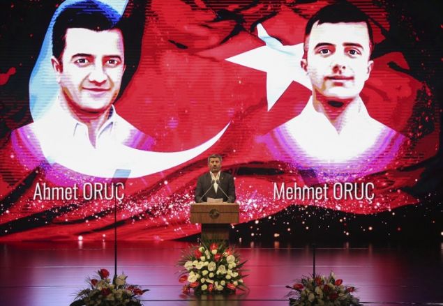 15 Temmuz darbe girişimi sırasında Özel Harekât Merkezi'nde görevliyken şehit olan polis memuru Mehmet Oruç ile ikizi Ahmet Oruç'un babası Ali Oruç'un törende yaptığı konuşmada yazdığı şiiri okuması, Cumhurbaşkanı Recep Tayyip'i ve salonda bulunanları duygulandırdı.