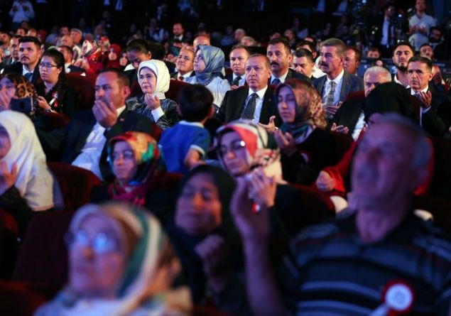 Cumhurbaşkanı Recep Tayyip Erdoğan, Beştepe Millet Kongre ve Kültür Merkezi'nde düzenlenen 15 Temmuz Şehitleri Anma Programı'na katıldı. Cumhurbaşkanı Erdoğan ve eşi Emine Erdoğan, programa katılan şehit ve gazi aileleri ile yakından ilgilendi.