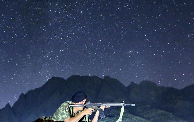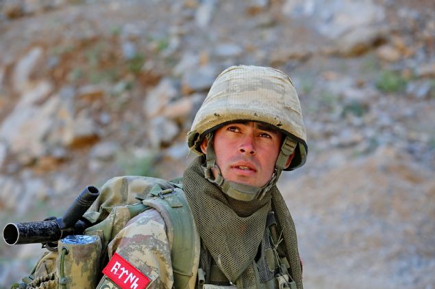 Hakkari'nin Yüksekova ilçesi Dağlıca 6'ncı Sınır Hudut Tabur Komutanlığı'na bağlı askerler, bölgede teröristlere yönelik operasyonlarına devam ediyor. Bölgedeki zorlu arazi şartlarında askerlerin ağır silah ve mühimmatları katırlarla taşınırken, keşif faaaliyetleri ise drone tarafından yapılıyor.