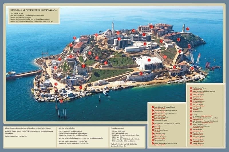 Türk demokrasi tarihinde kara bir leke olarak hatırlanan 27 Mayıs 1960 darbesinin ardından 592 kişilik Demokrat Parti kadrosunun 11 ay boyunca sözde yargılamaları yapıldığı Yassıada'da demokrasinin simgesi haline getirilerek Demokrasi ve Özgürlükler adası adıyla yeni görünümüne kavuşturuldu.