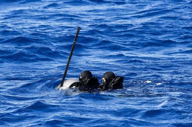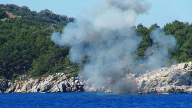 Deniz Kuvvetleri Komutanlığına ait AB-212 tipi helikopterden denize atlayan iki SAS personeli, yüzerek mayınlı bölgeye geldi. Buradaki hazırlıkların ardından mayını imha eden iki personel botla bölgeden alındı.