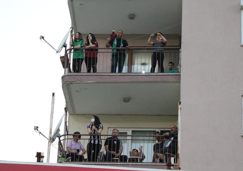 Denizlisporlu ve Beşiktaşlı taraftarlar, Denizli Atatürk Stadı'nın çevresinden ve hemen kale arkasında bulunan apartmanların balkonundan takımlarını destekledi.