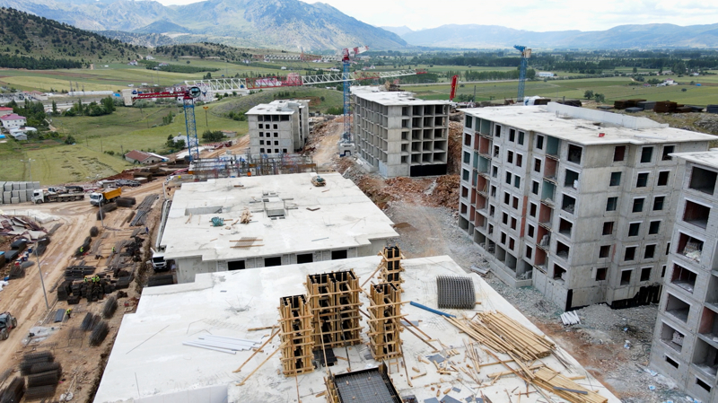Açıklamaya göre, ilk etapta ihalesi yapılmış deprem konutları, Kahramanmaraş'ın, Afşin, Andırın, Çağlayancerit, Dulkadiroğlu, Ekinözü, Elbistan, Göksun, Onikişubat, Nurhak, Pazarcık, Türkoğlu ilçelerinde inşa ediliyor.