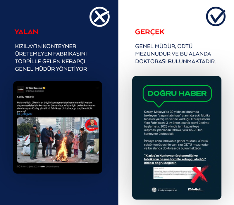 HAKİKAT | İddia edilenin aksine depremin akabinde bölgeye intikal eden Kızılay ekiplerinin sayısı 4 bin kişiyi bulmuş, AFAD ve Aile ve Sosyal Hizmetler Bakanlığı ile birlikte 137 bin 973 çadır ve 1 milyon 507 bin 494 battaniye sevk etmiştir. Toplam 97 bin 973 Aile Yaşam Çadırının kurulumu tamamlanmıştır. Kızılay Genel Başkanı Kerem Kınık, 1993'te İstanbul Üniversitesi Tıp Fakültesi mezunu bir doktordur. Ayrıca Kınık, 2019 yılında Bezmialem Vakıf Üniversitesinde Afet Tıbbı doktorasını tamamlamıştır. Kınık, 1993'ten itibaren de birçok alanda sağlık yöneticiliği yapmıştır. Üniversite yıllarından itibaren çeşitli insani yardım faaliyetlerine katılan Kerem Kınık, 2013 yılında Yeryüzü Doktorları Derneği Başkanlığına seçilmiş ve Pakistan, Filistin, Orta Afrika, Somali gibi çok sayıda çatışma ve afet bölgesinde insani yardım faaliyetleri yürütmüştür.