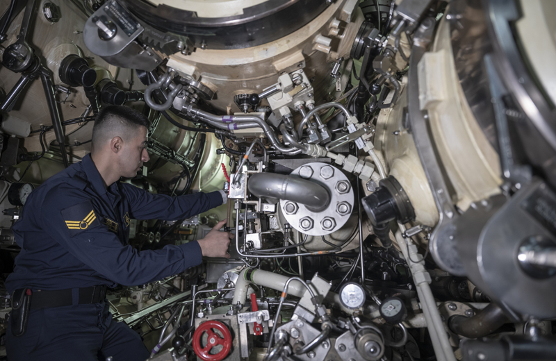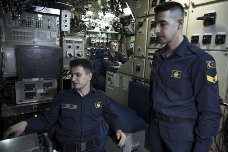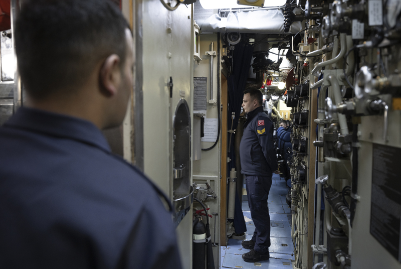 AA ekibi, Gölcük Donanma Komutanlığında konuşlu TCG Preveze (S-353) denizaltısını ve görevli mürettebatın çalışmalarını görüntüledi.