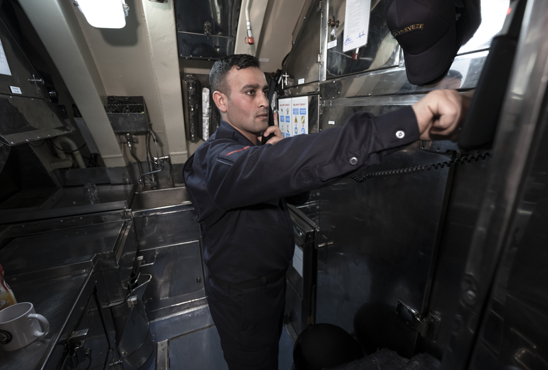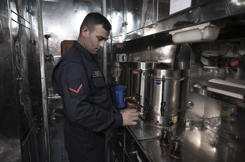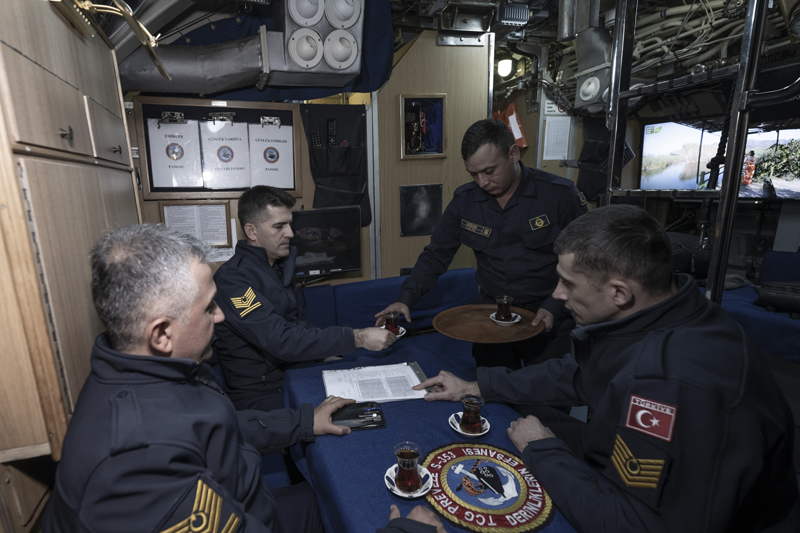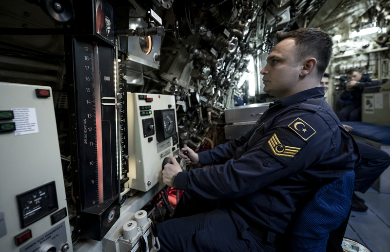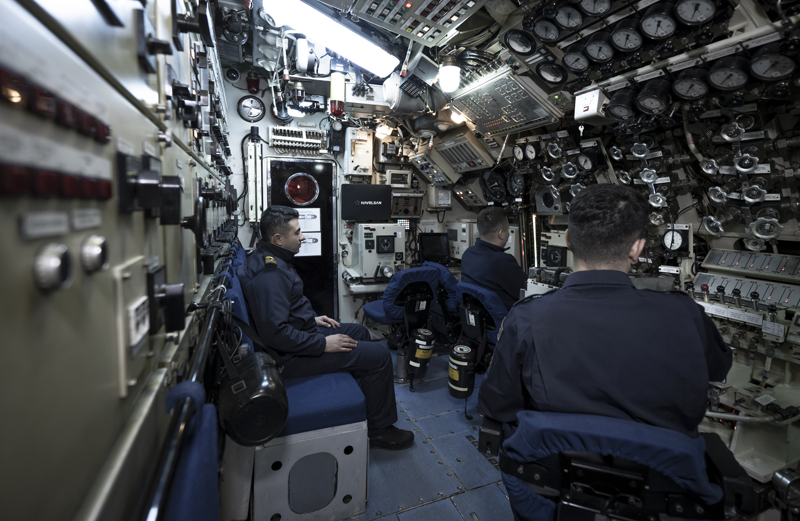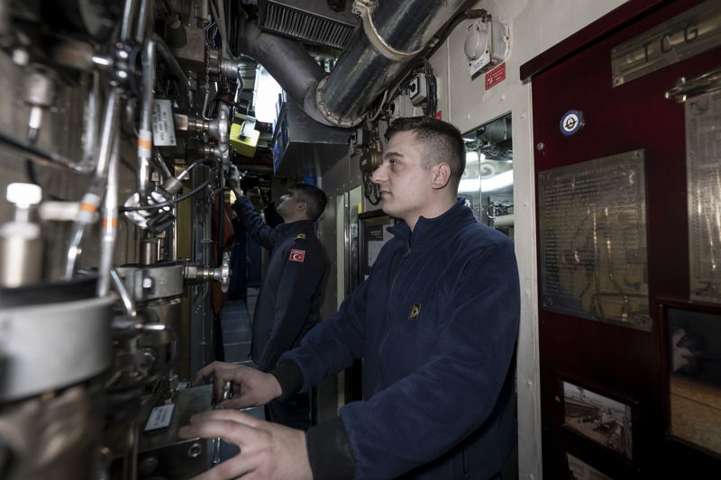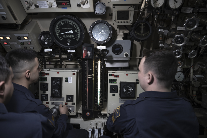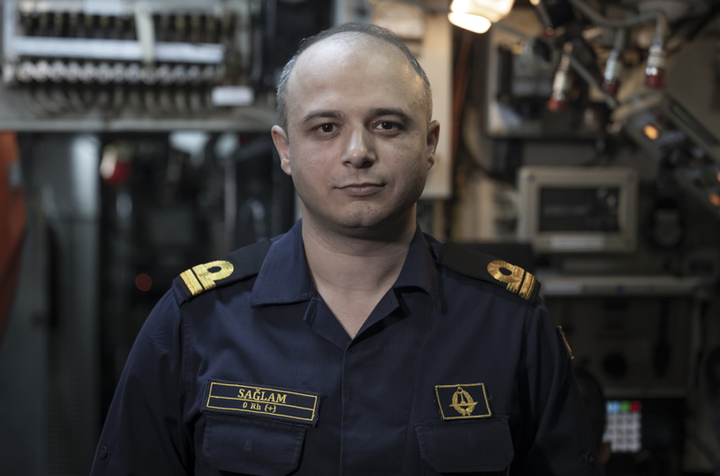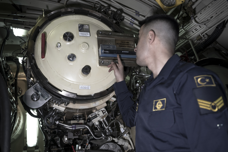 Yüzbaşı Sağlam, denizaltında emniyet sistemi dendiğinde akla ilk gelenin personel eğitimi olduğuna işaret ederek, 'Önce personelin emniyet hususları konusundaki eğitimi detaylı bir şekilde sağlanmakta, bilahare bu eğitim teknik donanım ile birleştirilerek emniyet sistemi oluşturulmaktadır. Gemimizde tüm daireleri 24 saat esasına göre takip eden sistemler mevcuttur.' diye konuştu.