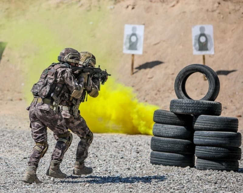 35 derece sıcakta gerçekleşen eğitimde, 'meskun mahal', 'tekli nizami atış', 'keskin nişancı' ve 'karşı ateş baskılama' olarak hazırlanan senaryo uygulandı.