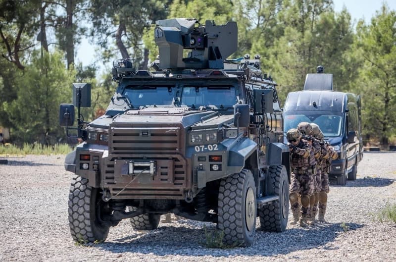 Yerli ve milli silahların kullanıldığı eğitimde, ilk olarak 'Ejder' adlı zıhlı araç ile 8 özel harekat polisi, meskun mahal operasyonu gerçekleştirdi.