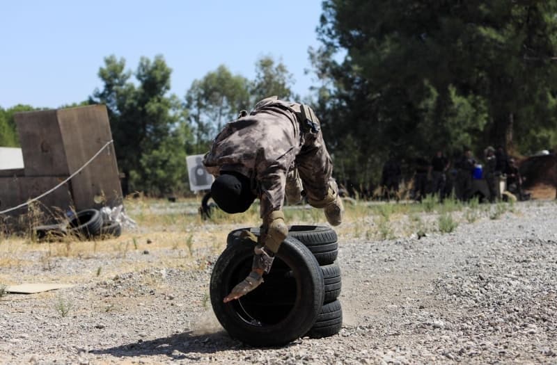 Antalya İl Emniyet Müdürlüğü Özel Harekat Şube Müdürlüğü'nde görevli polisler, Döşemealtı ilçesindeki atış poligonunda eğitim yaptı.