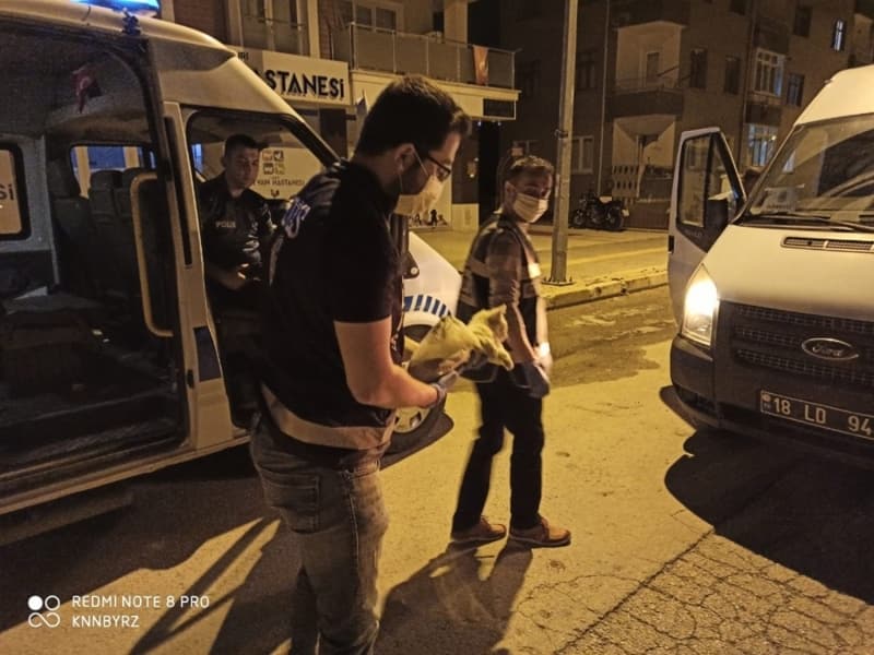 Kediyi ekip aracına alan polis ekipleri, hemen veteriner hekimine götürerek tedavilerini başlattı.